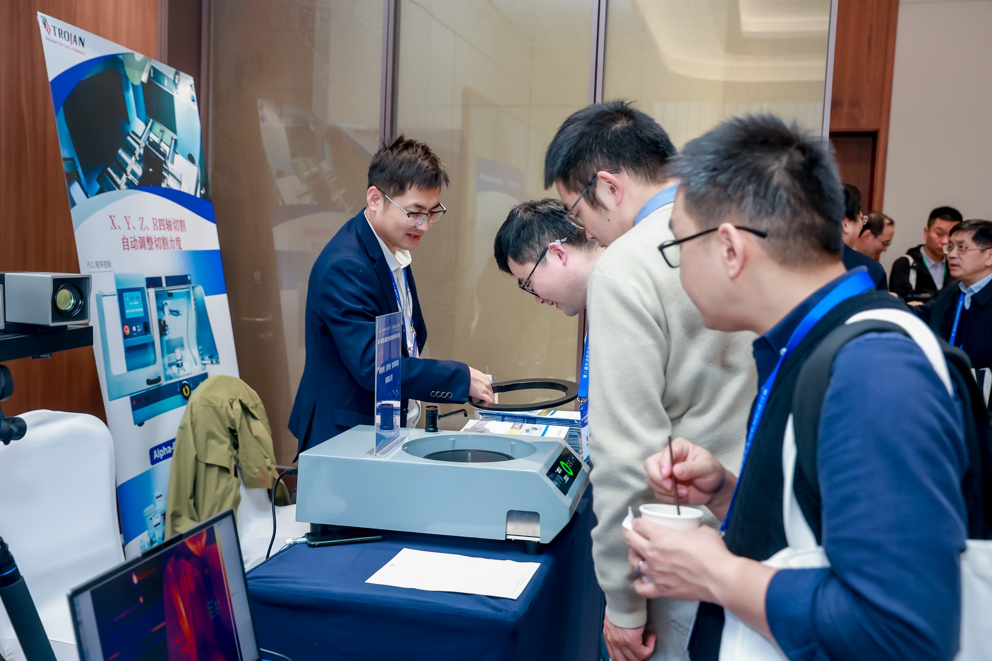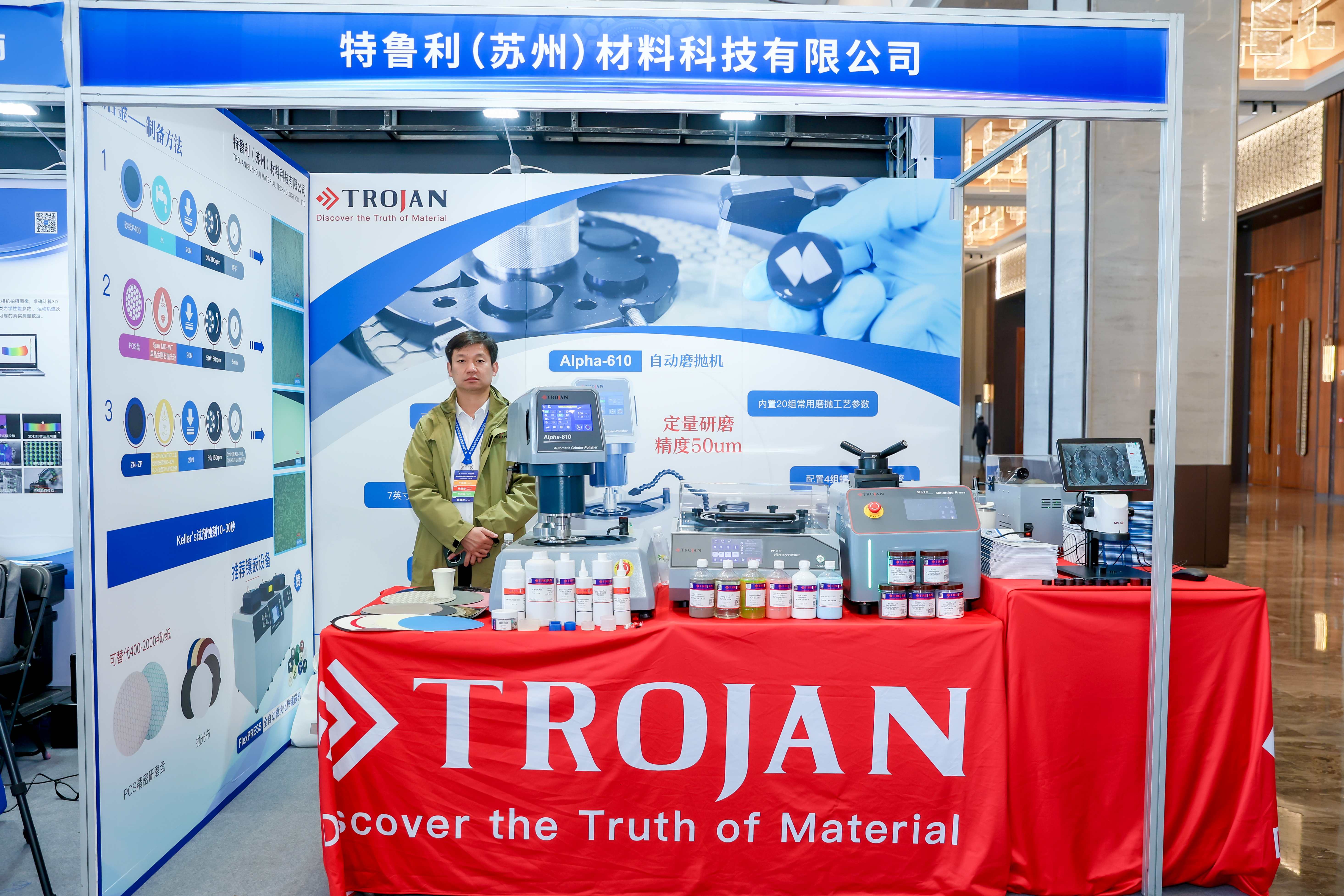 As an outstanding partner of this conference, Trojan showcased its series of solutions for aero-engine material testing. Several pieces of equipment, including the Alpha-610 Automatic Grinder and Polisher, VP-430 Vibratory Polisher, and CT-150 Low-Speed Precision Cutting Machine, attracted significant attention for their exceptional performance.