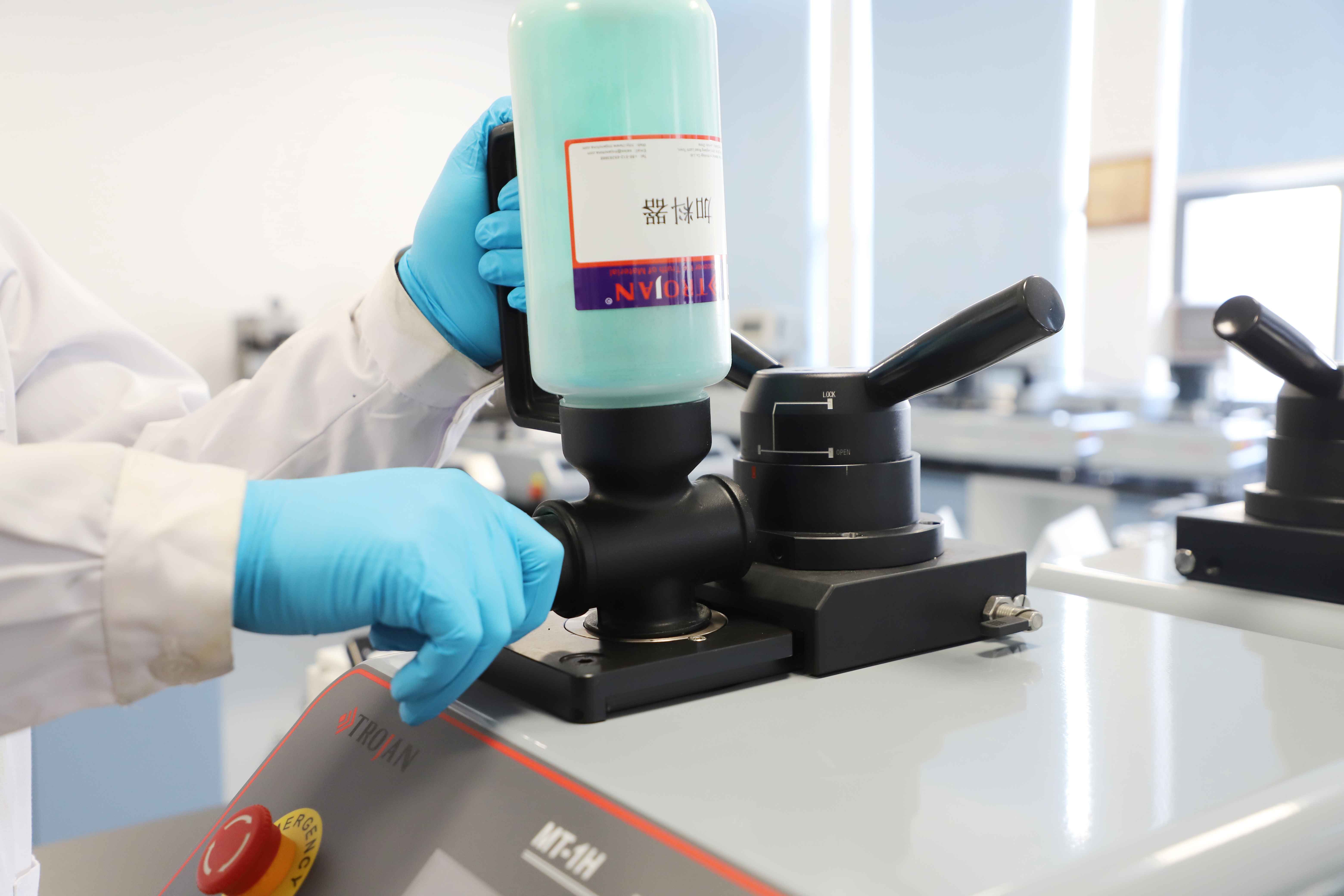 Application: Quantitative addition of hot mounting resin to prevent dust contamination in the air.